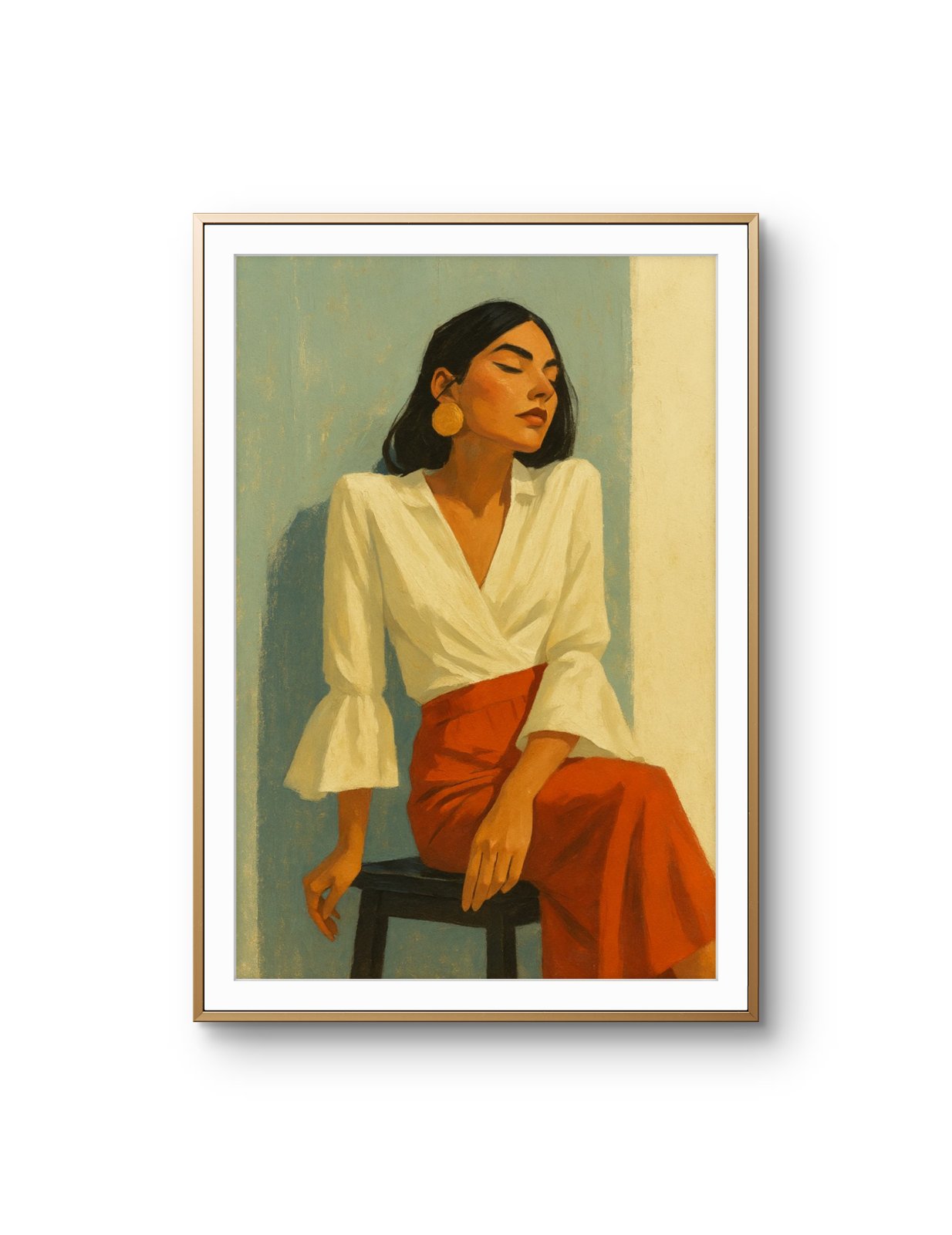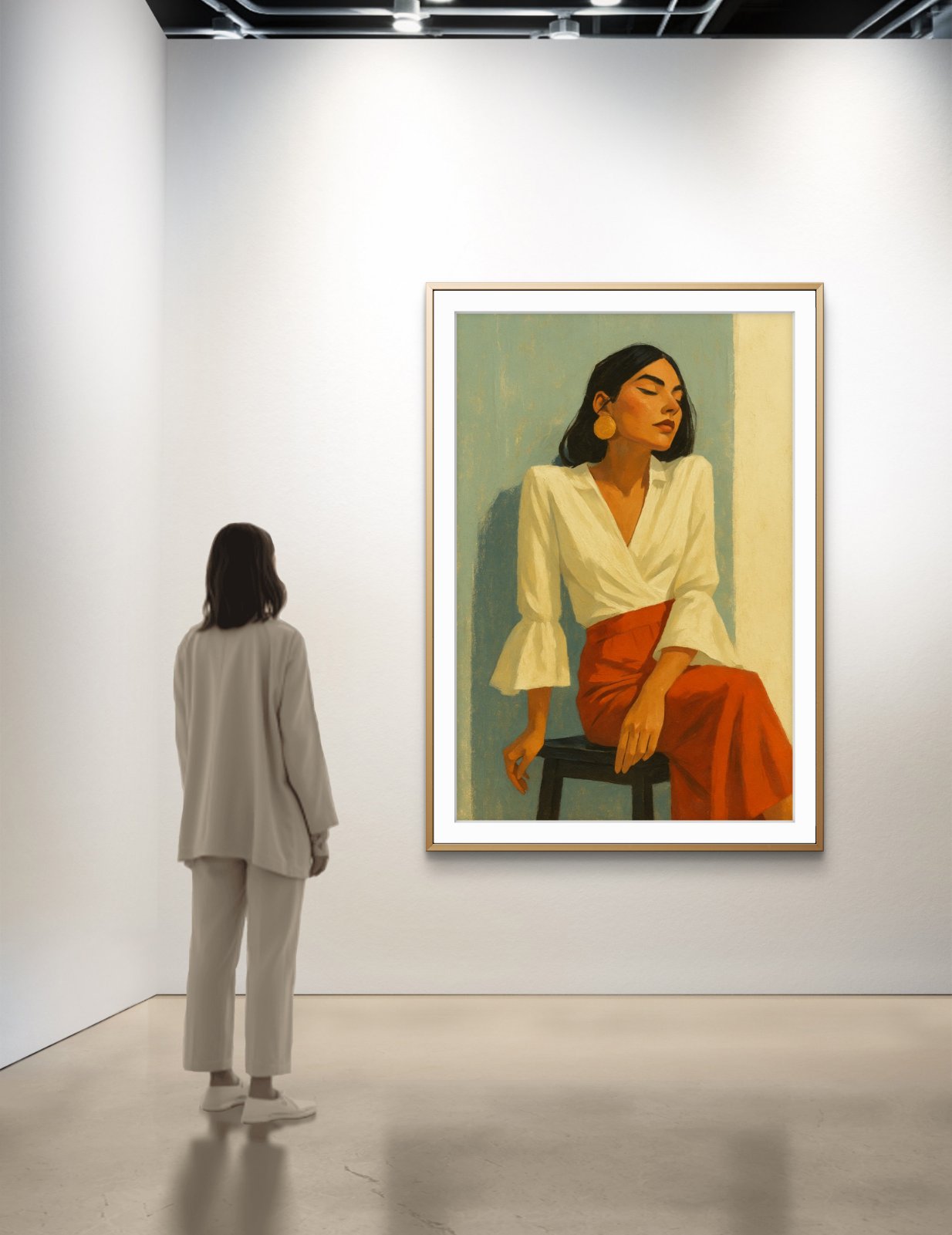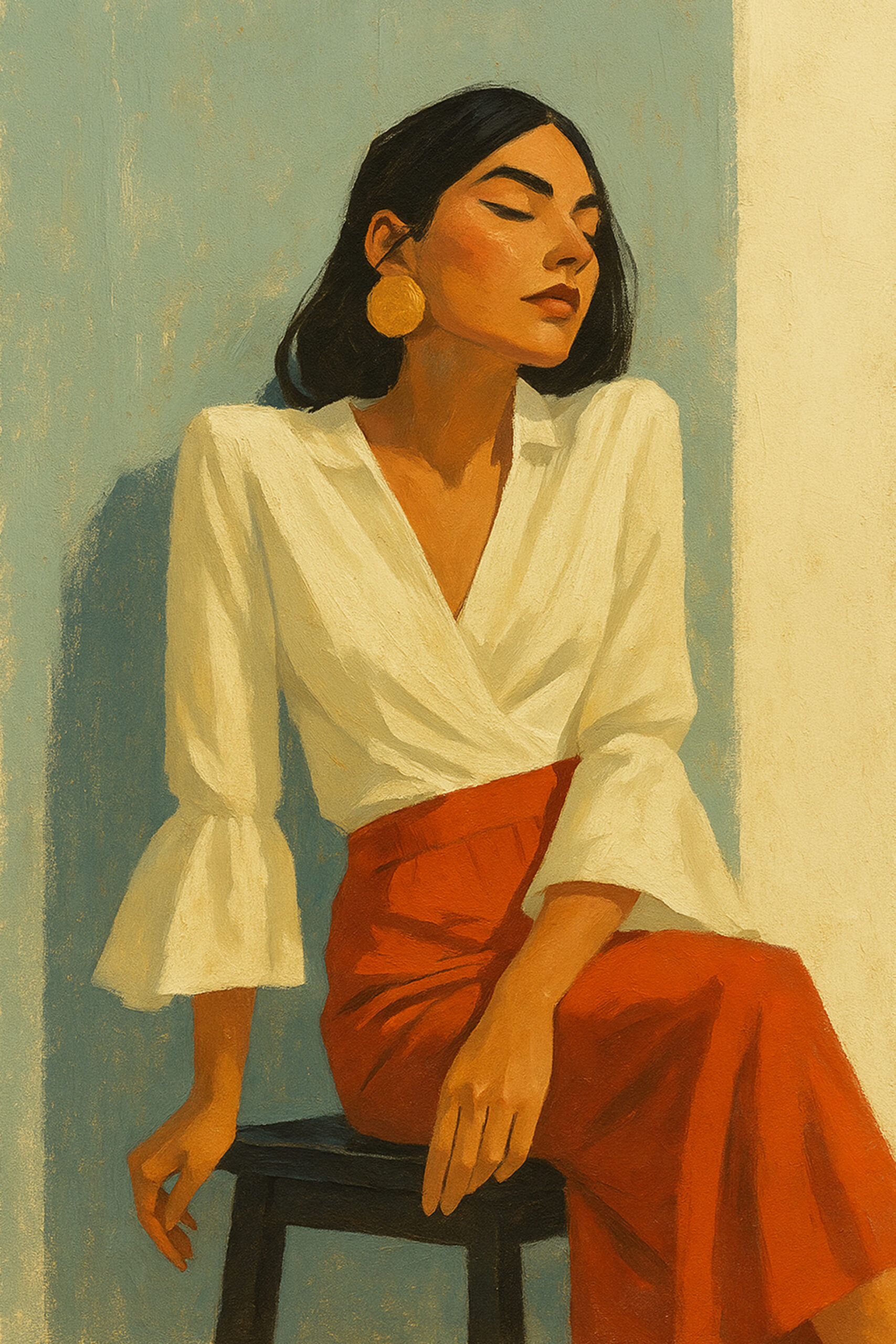 100 €This evocative portrait captures a fleeting moment of intense concentration, as a man in a classic fedora lights his cigarette. The interplay of warm light from the glowing cigarette against the dark backdrop brings the subject to life, emphasizing his sharp features and strong posture. The rich, textured brushwork conveys a sense of depth, while the subdued palette of dark tones and earthy hues enhances the scene’s moody, cinematic atmosphere. With its noir-inspired essence, this painting evokes a sense of mystery, hinting at an untold story behind the figure’s thoughtful expression.