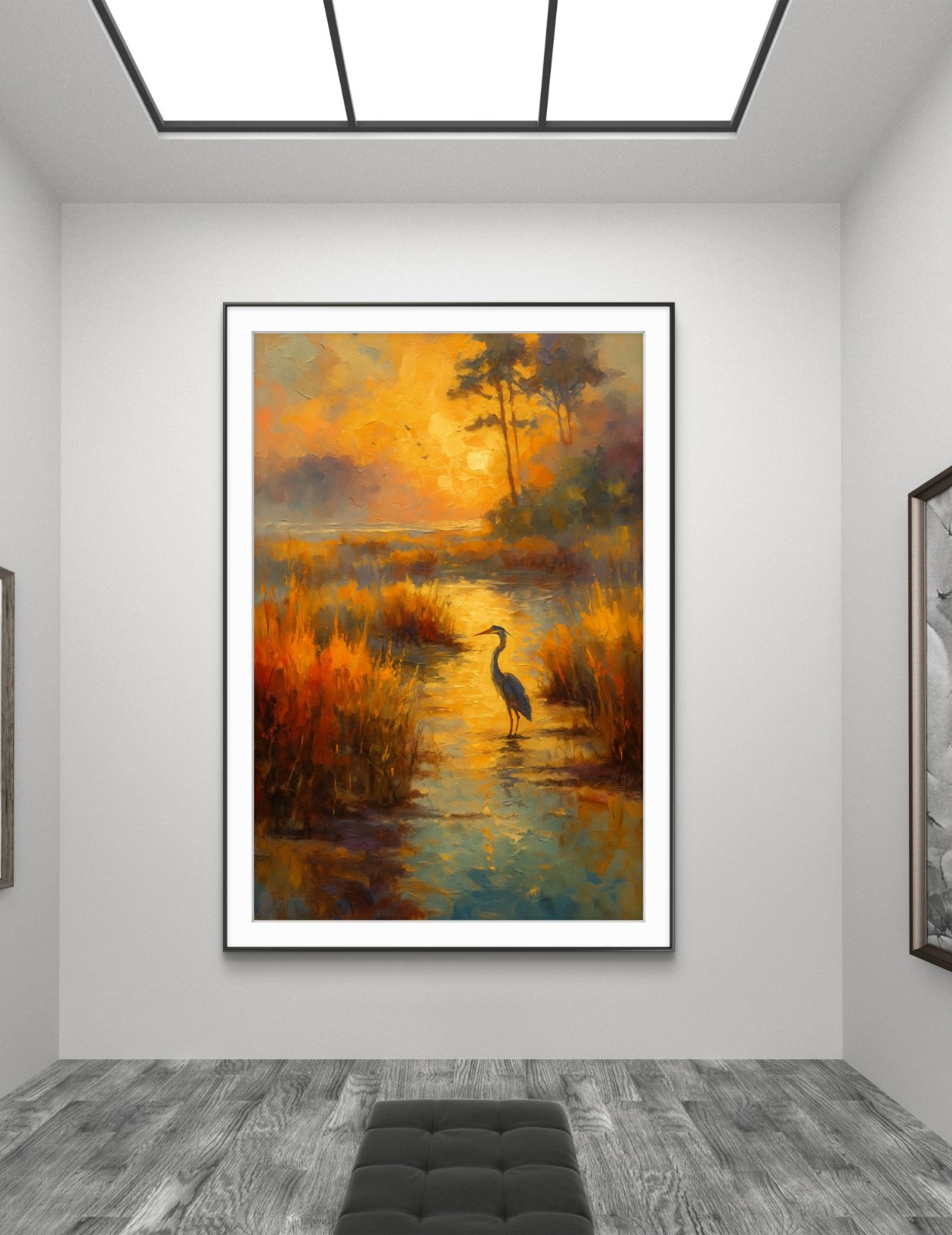 140 €This vibrant painting showcases a rooster in all its proud glory, standing tall on a rock with its head held high. The striking red comb and bright orange and yellow feathers contrast beautifully against the deep blues and purples of its tail, making the rooster’s presence commanding. The warm golden background complements the bird’s fiery tones, creating a sense of warmth and energy. The detailed brushstrokes bring texture to the rooster’s feathers and the surrounding elements, capturing its proud stance and dynamic movement. This artwork radiates confidence, symbolizing strength, vitality, and a bold spirit.
