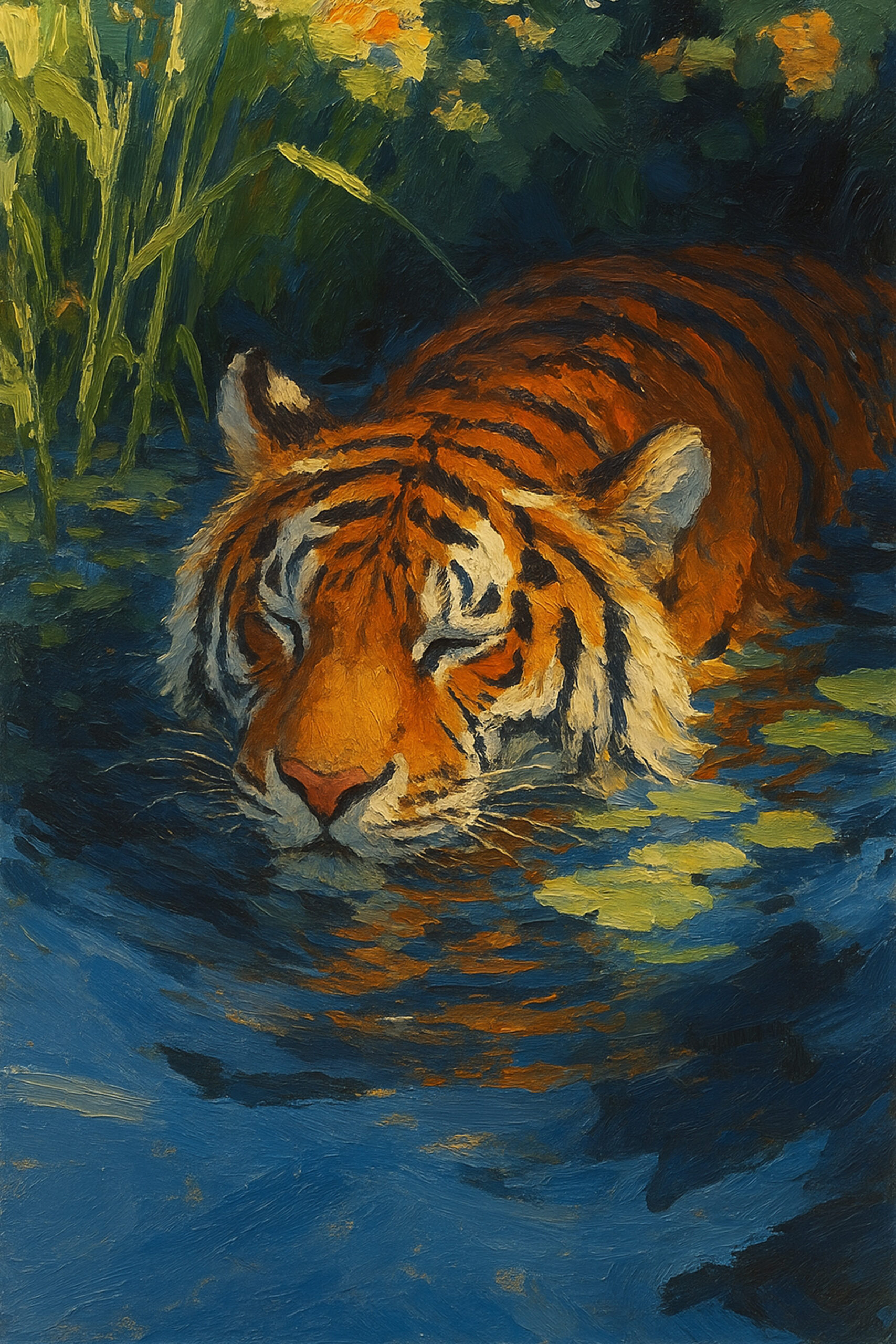 90 €A bold and enigmatic portrait of a mysterious figure dressed in a crisp blue suit and a striking red-and-black fedora. His face, half-illuminated and half-consumed by darkness, adds an air of intrigue, reminiscent of noir cinema and classic detective stories. The use of sharp contrasts and a minimalist color palette—deep blues, fiery reds, and stark whites—creates a sense of sophistication and secrecy. Is he a spy, a detective, or a man hiding secrets in the shadows? The ambiguity of his expression and the dramatic lighting make this image a captivating visual narrative of mystery, power, and untold stories.