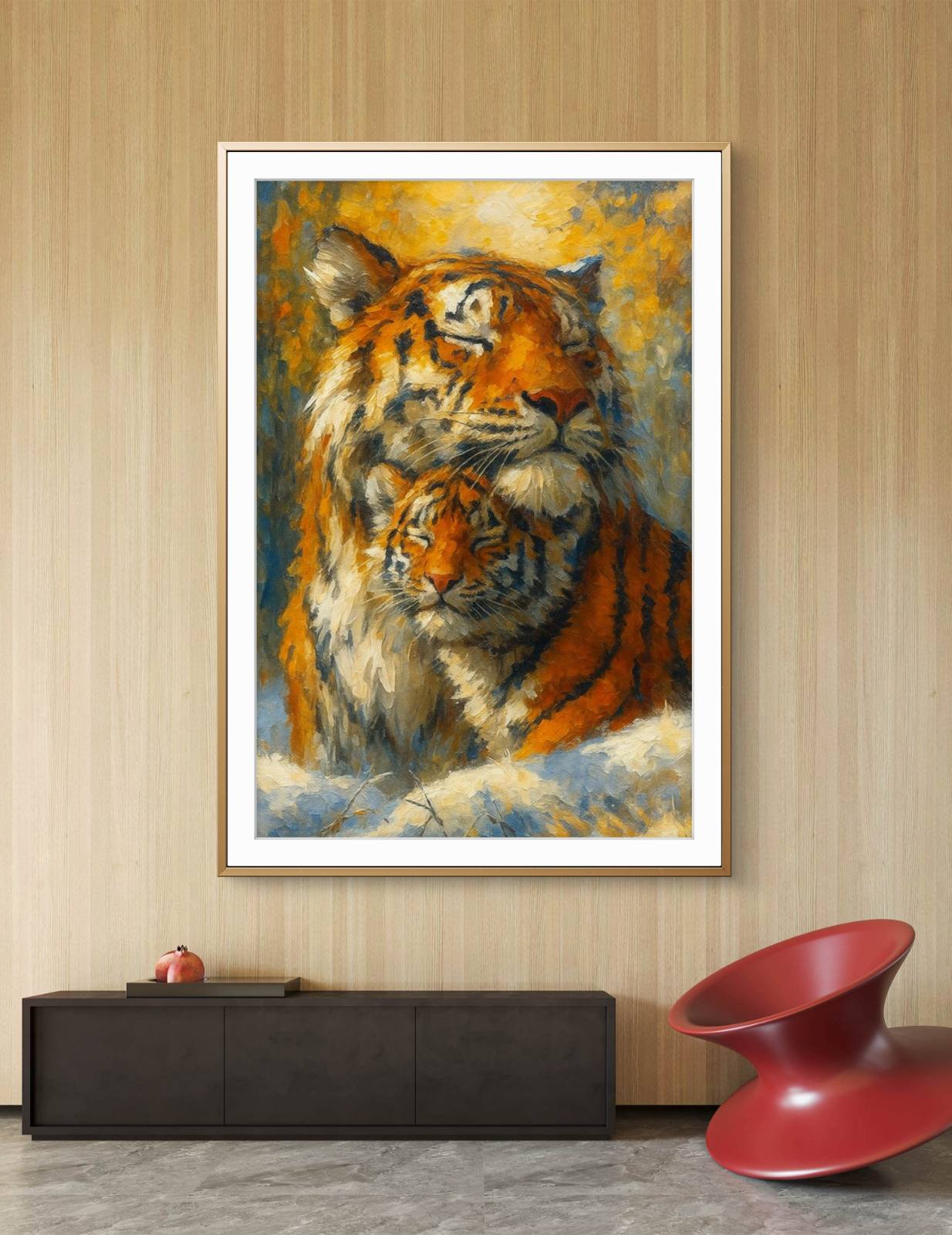 90 €A small window glows warmly in an expanse of deep blue, revealing the silhouette of a lone cat perched on the windowsill. The contrast between the golden light and the vast, empty darkness creates a striking sense of solitude and contemplation. Is the cat waiting for someone, or simply observing the mysteries of the night? This minimalist yet evocative image captures the essence of quiet nights, hidden thoughts, and the silent presence of a watchful companion.