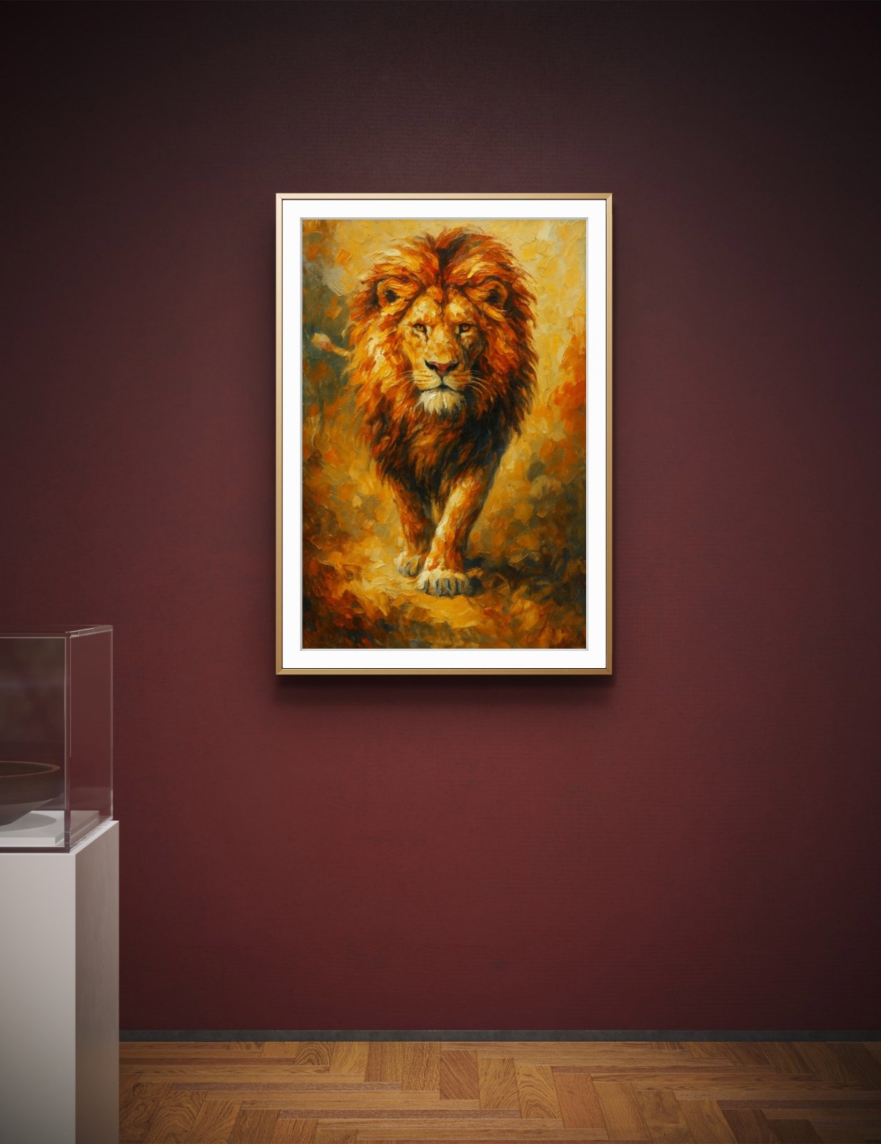 120 €This captivating portrait showcases a woman with an air of confidence and elegance, her gaze direct and poised. She wears a vibrant red hat that complements the rich hues of her dress, creating a striking contrast against the soft blue background. Her subtle expression, with slightly closed eyes and a confident lift of her chin, exudes strength and grace. The golden earrings and delicate necklace add a touch of refinement, enhancing the overall chic aesthetic. The textured brushstrokes give the piece a sense of movement, while the bold color palette amplifies her charismatic presence. This artwork captures the essence of timeless elegance, highlighting the beauty and power of simplicity.
