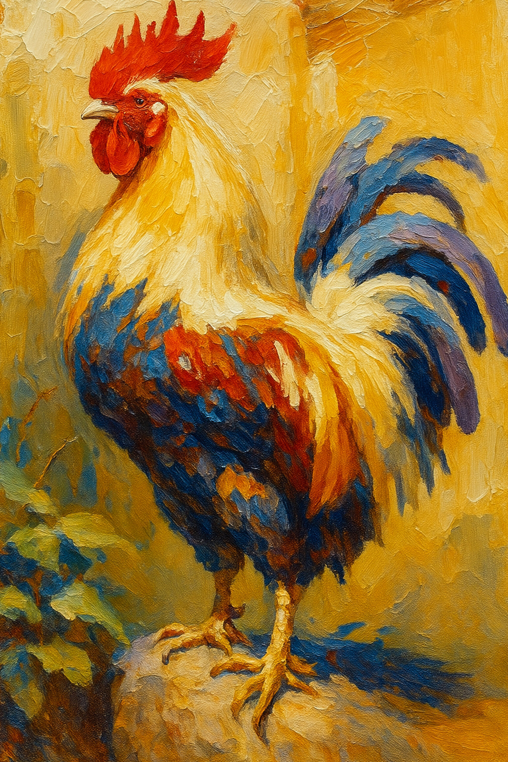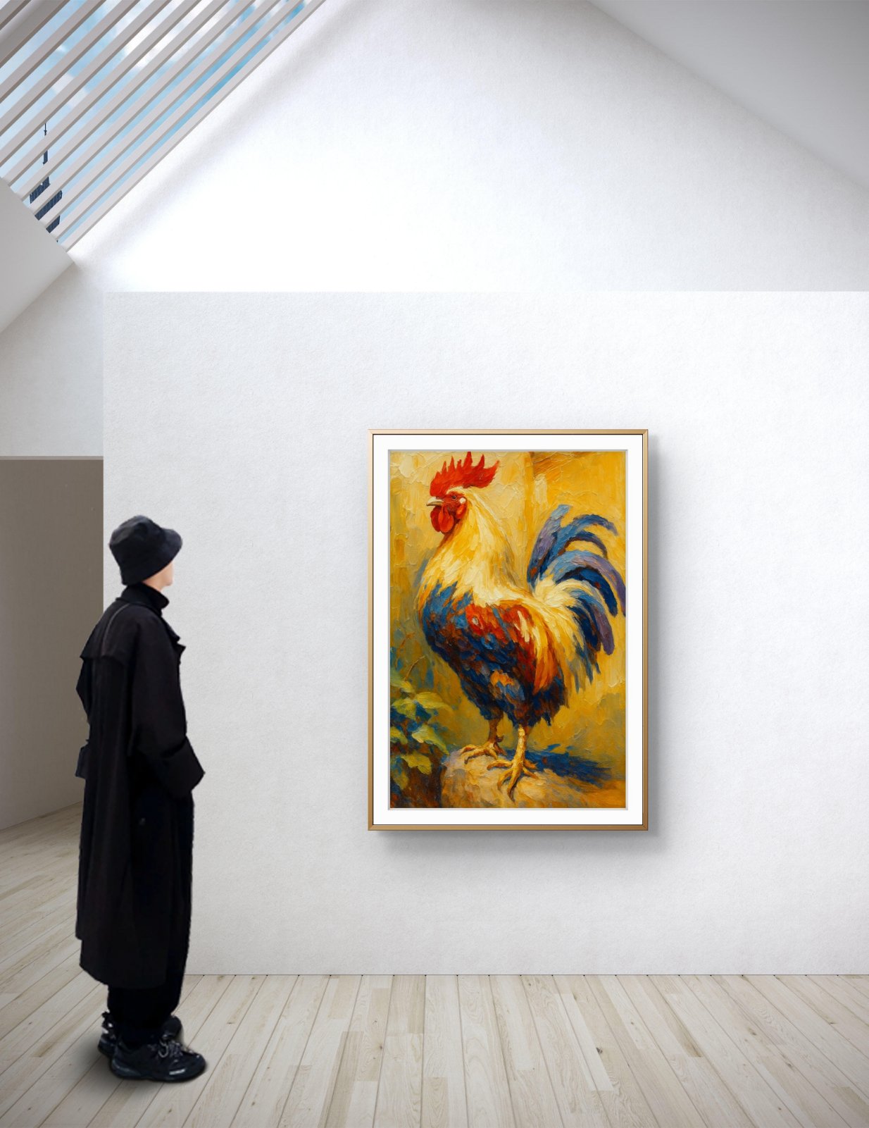 140 €This vivid painting captures the exhilarating motion of a white horse as it gallops through a field, its mane flowing wildly in the wind. The rich yellow and orange tones in the background evoke the warmth and energy of the scene, while the horse’s powerful movement is beautifully rendered in bold, textured strokes. The dynamic brushwork brings a sense of freedom and vitality, emphasizing the raw power and grace of the animal in motion. The glowing light surrounding the horse enhances its ethereal quality, as if it is racing through a world of energy and light. This artwork conveys a sense of strength, liberation, and the untamed spirit of nature.