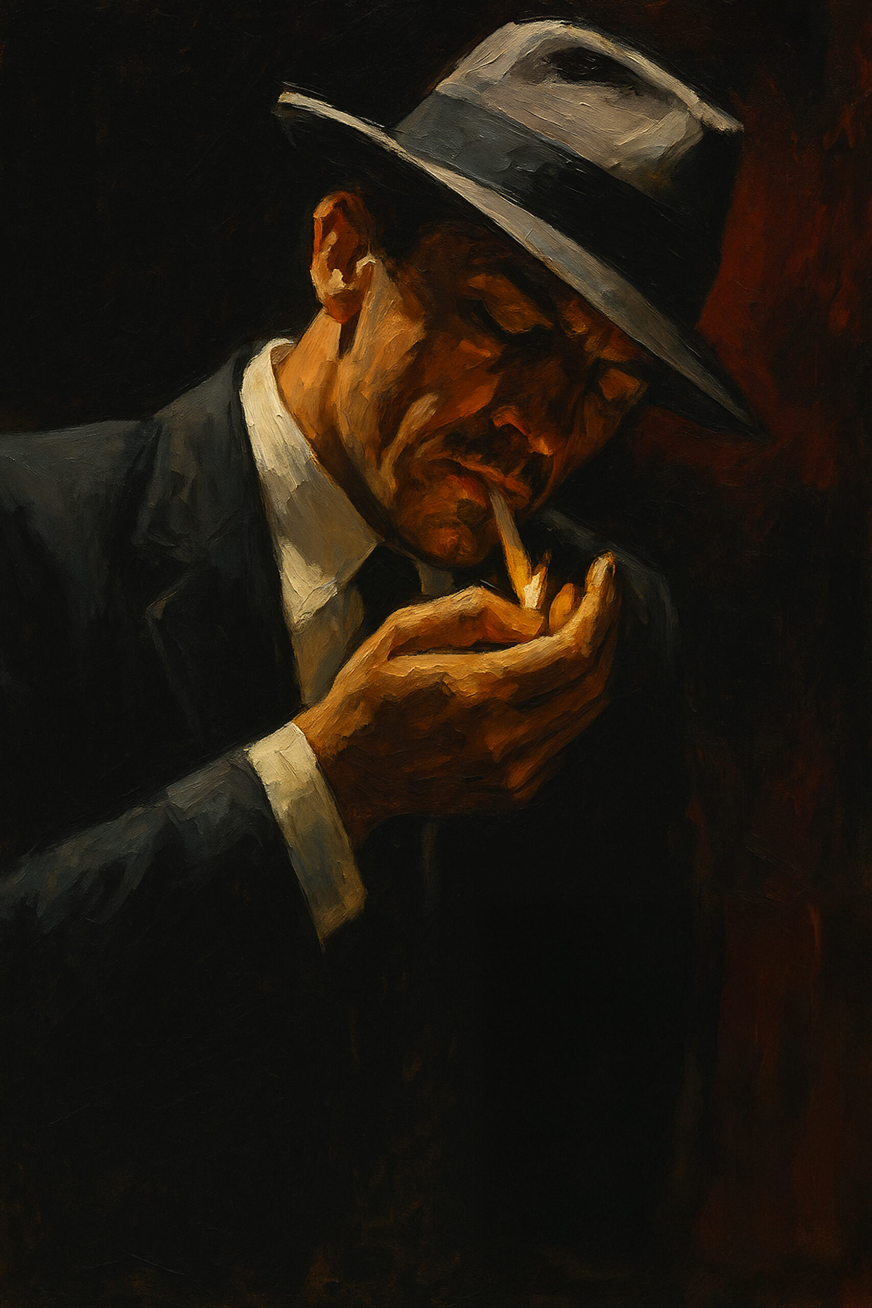100 €Rendered in warm, textured brushstrokes, this oil painting captures a serene and introspective moment of a woman enveloped in quiet luxury. Seated in a plush leather armchair, she holds a glass of red wine with elegance and poise, her eyes closed as if savoring the aroma or the stillness of the moment. The rich, earthy tones of the background blend harmoniously with the deep hues of her black dress and the wine, evoking warmth, depth, and a sense of timeless indulgence. A celebration of self-reflection and peaceful solitude, the piece invites the viewer to pause and embrace the beauty of presence.