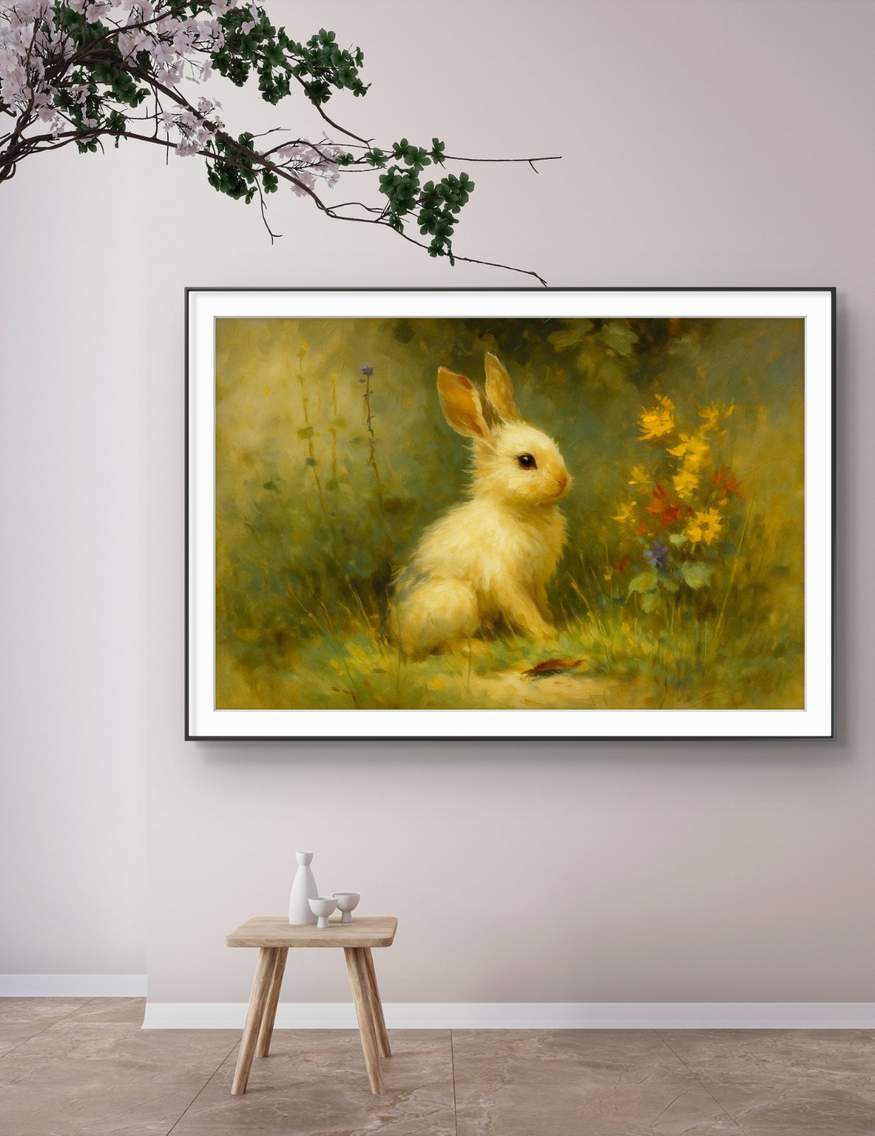 80 €This vibrant oil painting captures the serene beauty of two goldfinches perched on weathered posts amidst a field of sunflowers. The warm golden hues of the flowers complement the bright, playful colors of the birds, creating a peaceful and harmonious scene. The soft, textured brushwork conveys the warmth of a late summer day, while the soft blue sky and dappled light enhance the gentle atmosphere. This artwork evokes a sense of tranquility and the simple joys of nature.