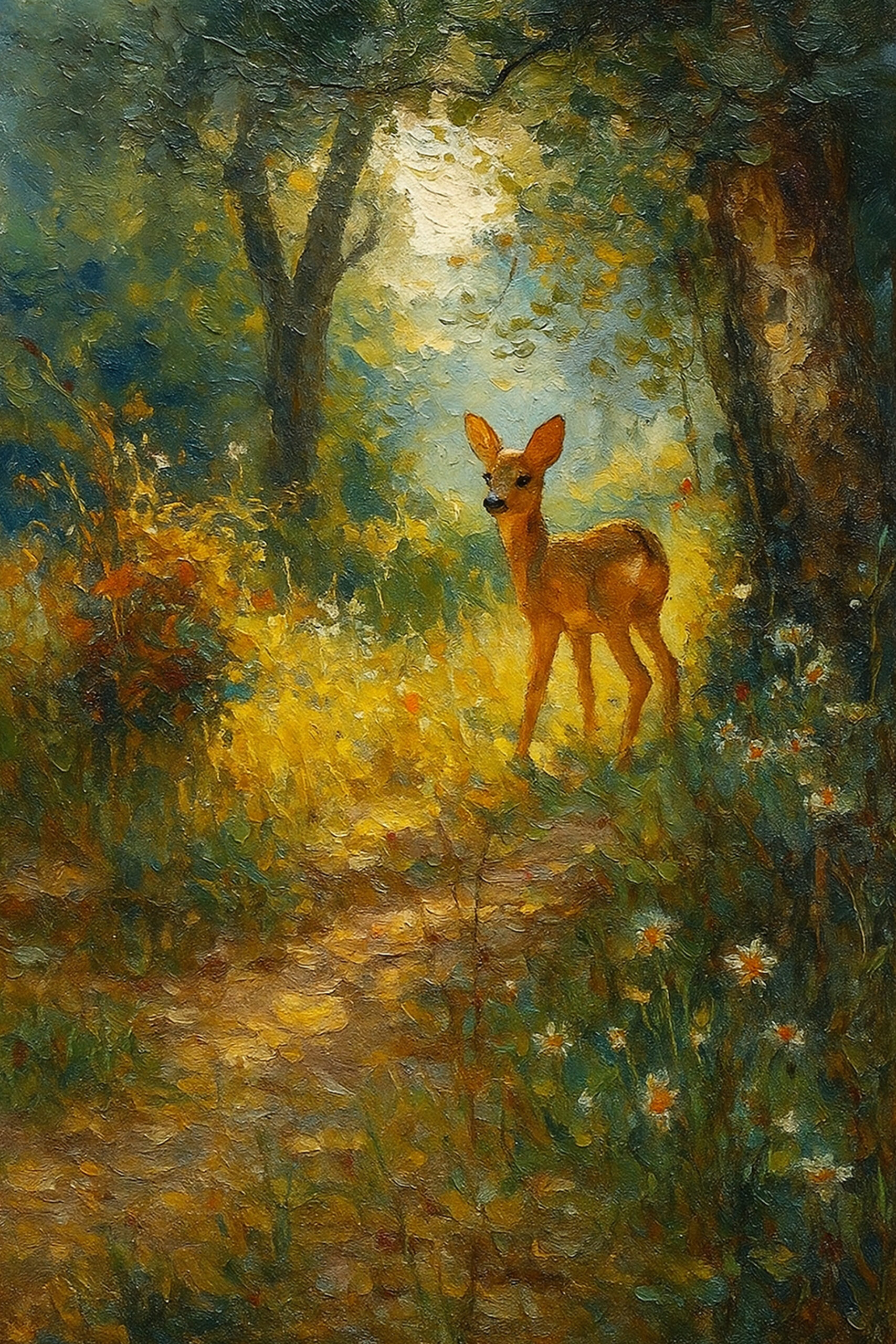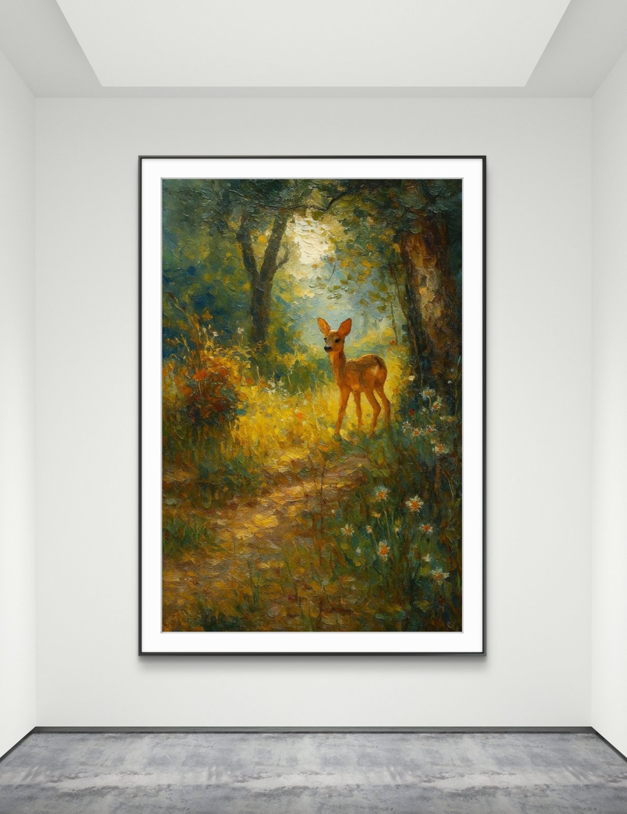 140 €This vivid painting captures the exhilarating motion of a white horse as it gallops through a field, its mane flowing wildly in the wind. The rich yellow and orange tones in the background evoke the warmth and energy of the scene, while the horse’s powerful movement is beautifully rendered in bold, textured strokes. The dynamic brushwork brings a sense of freedom and vitality, emphasizing the raw power and grace of the animal in motion. The glowing light surrounding the horse enhances its ethereal quality, as if it is racing through a world of energy and light. This artwork conveys a sense of strength, liberation, and the untamed spirit of nature.